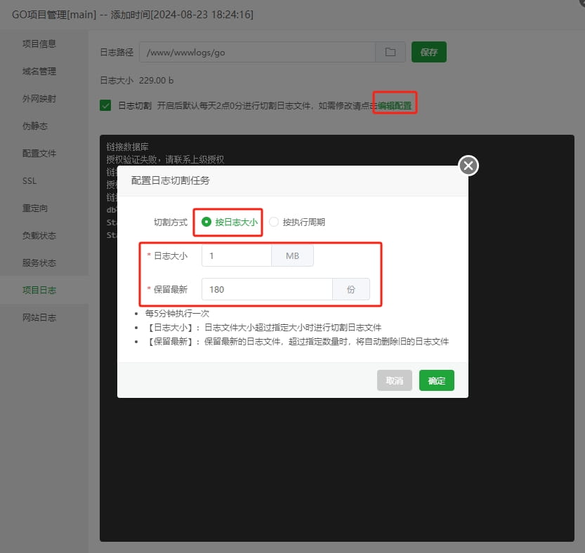我们只需要打开日志切割,下次就不会出现这种情况了