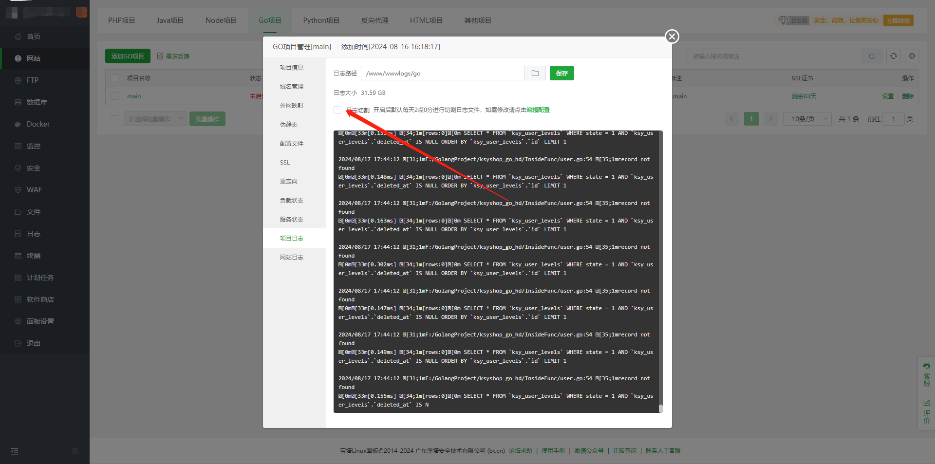我们只需要打开日志切割,下次就不会出现这种情况了