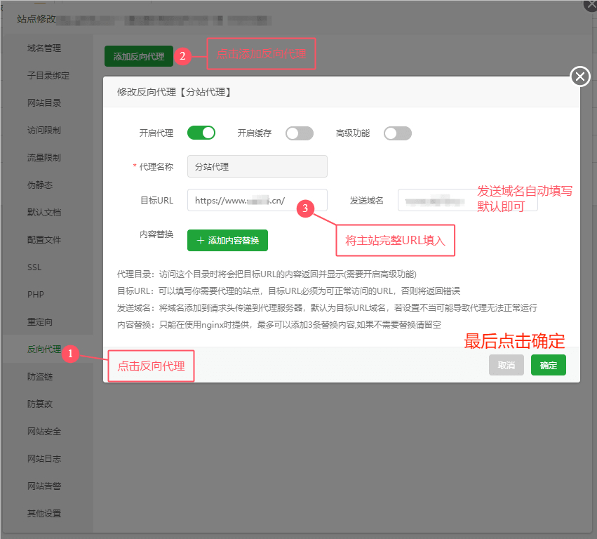 3、编辑站点->设置反向代理