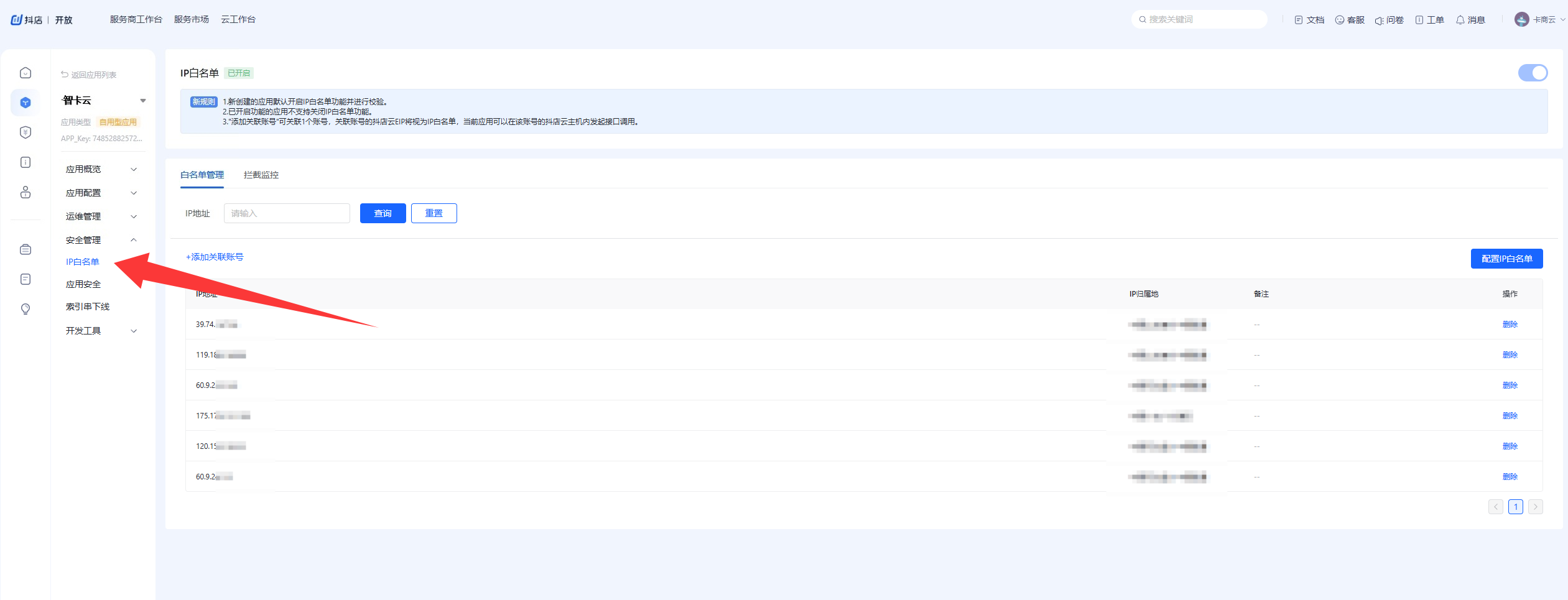 添加ip白名单(自己的服务器ip)